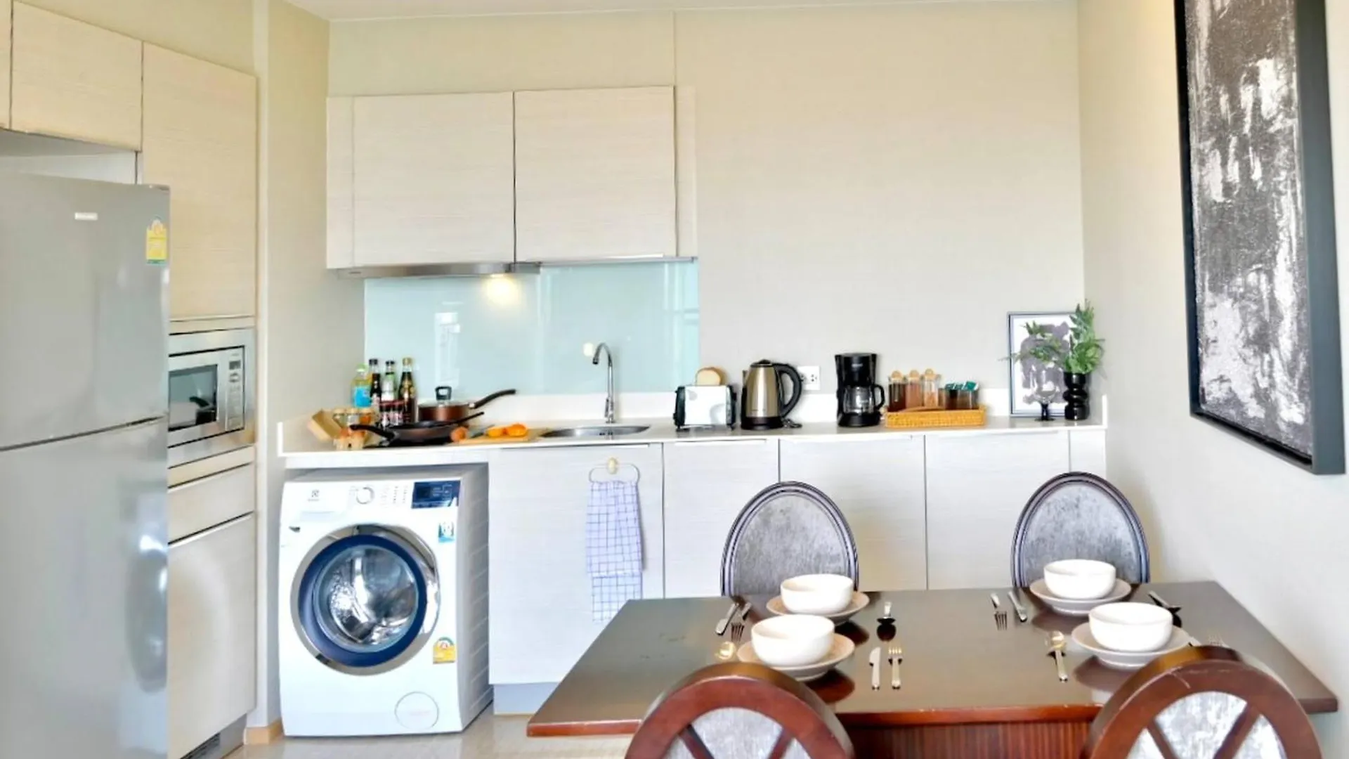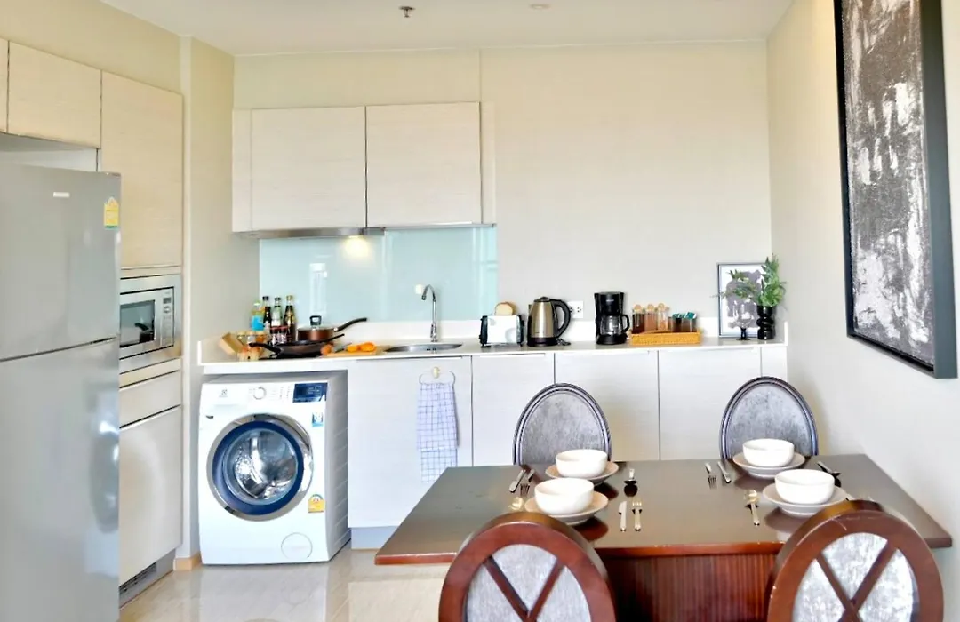 Pour votre confort, cette propriété Appartement 5Min Metro | Kingbed | Kitchen Full | Netflix Wifi comprend une cuisine équipée avec une bouilloire électrique, un réfrigérateur et de la vaisselle fournis. Appartement 5Min Metro | Kingbed | Kitchen Full | Netflix Wifi est près de la station de métro Phrom Phong.